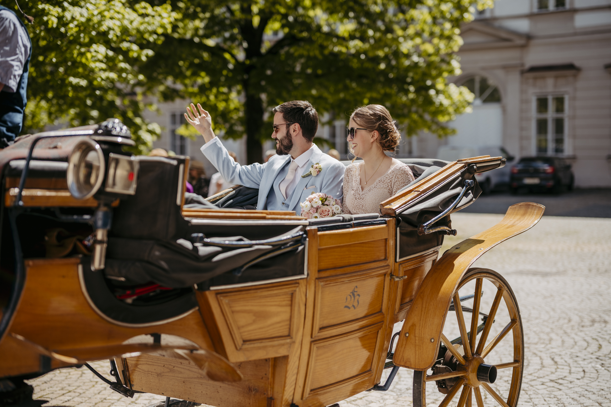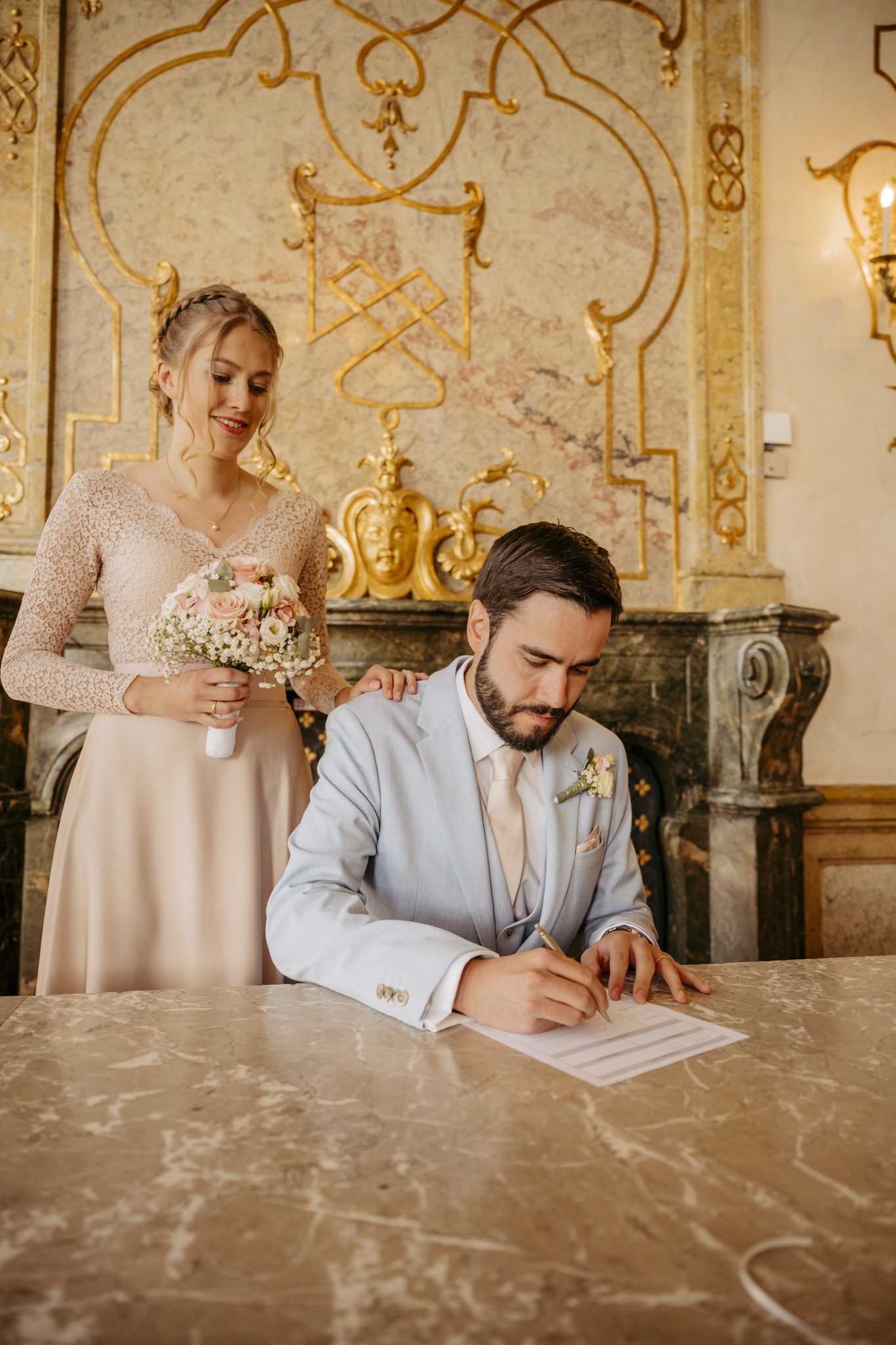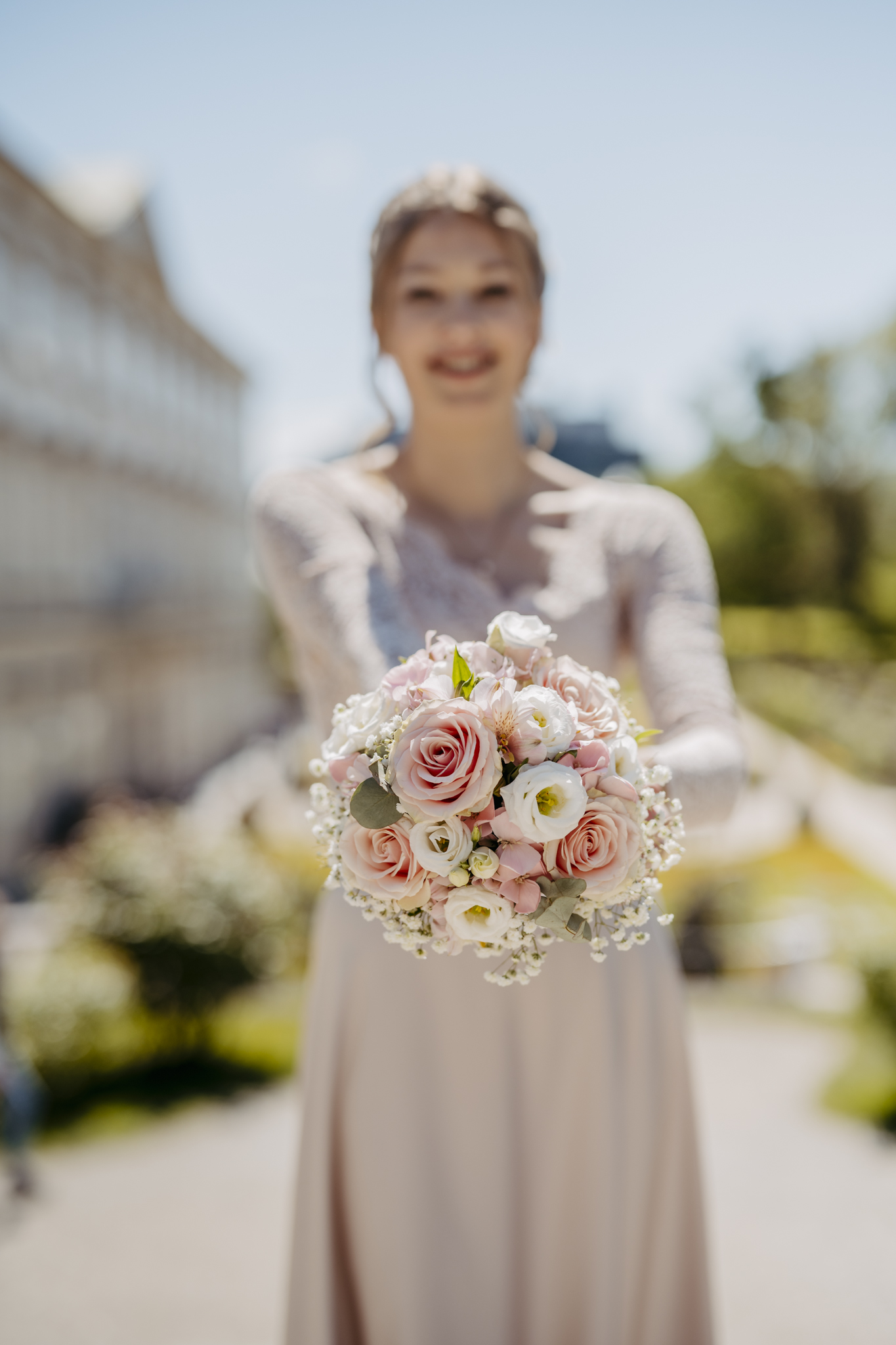 Nach der Trauung nutzte das frisch vermählte Paar die malerischen Schlossgärten für unvergessliche Erinnerungsfotos. Der blühende Garten, die kunstvollen Skulpturen und der Duft des Frühlings boten eine traumhafte Kulisse, die den Tag perfekt abrundete.