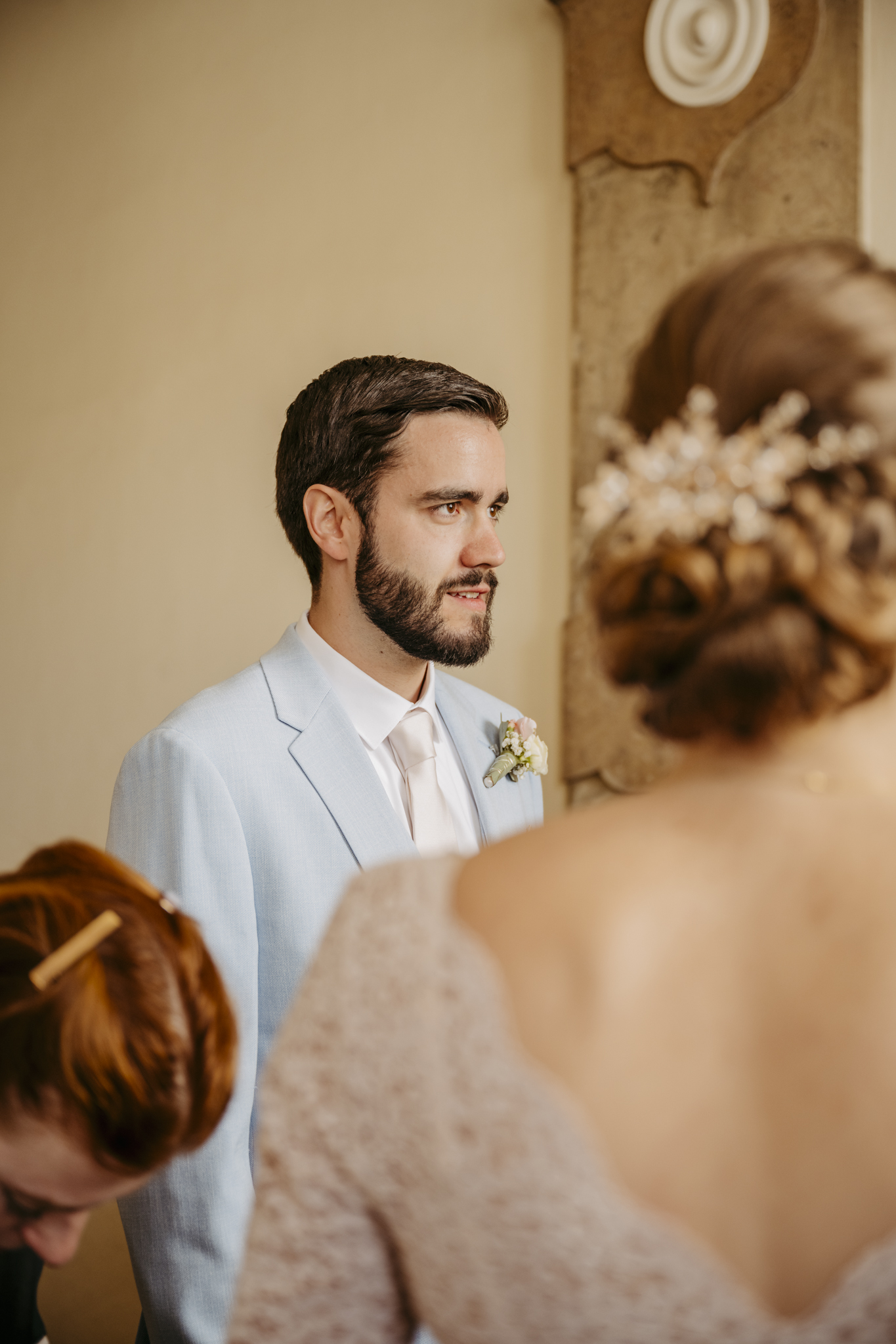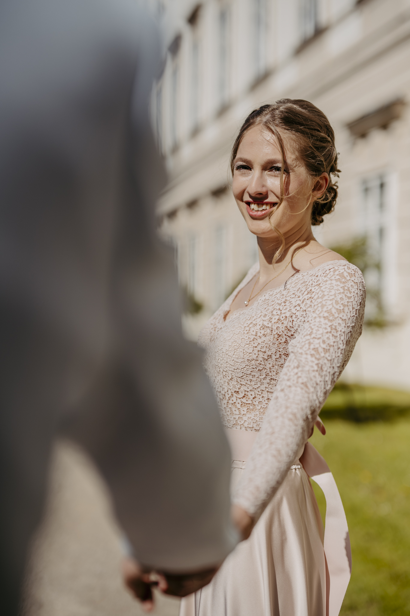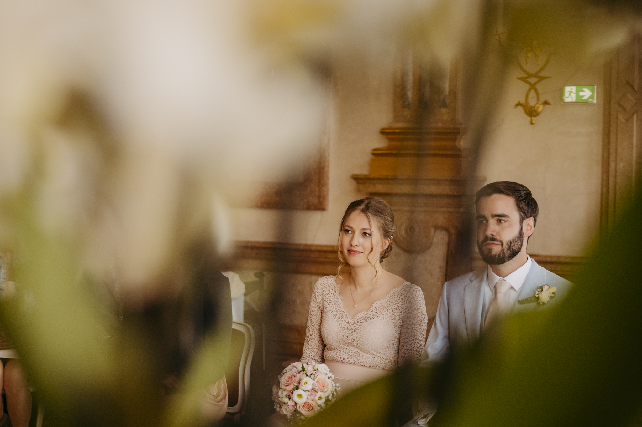 Nach der Trauung nutzte das frisch vermählte Paar die malerischen Schlossgärten für unvergessliche Erinnerungsfotos. Der blühende Garten, die kunstvollen Skulpturen und der Duft des Frühlings boten eine traumhafte Kulisse, die den Tag perfekt abrundete.