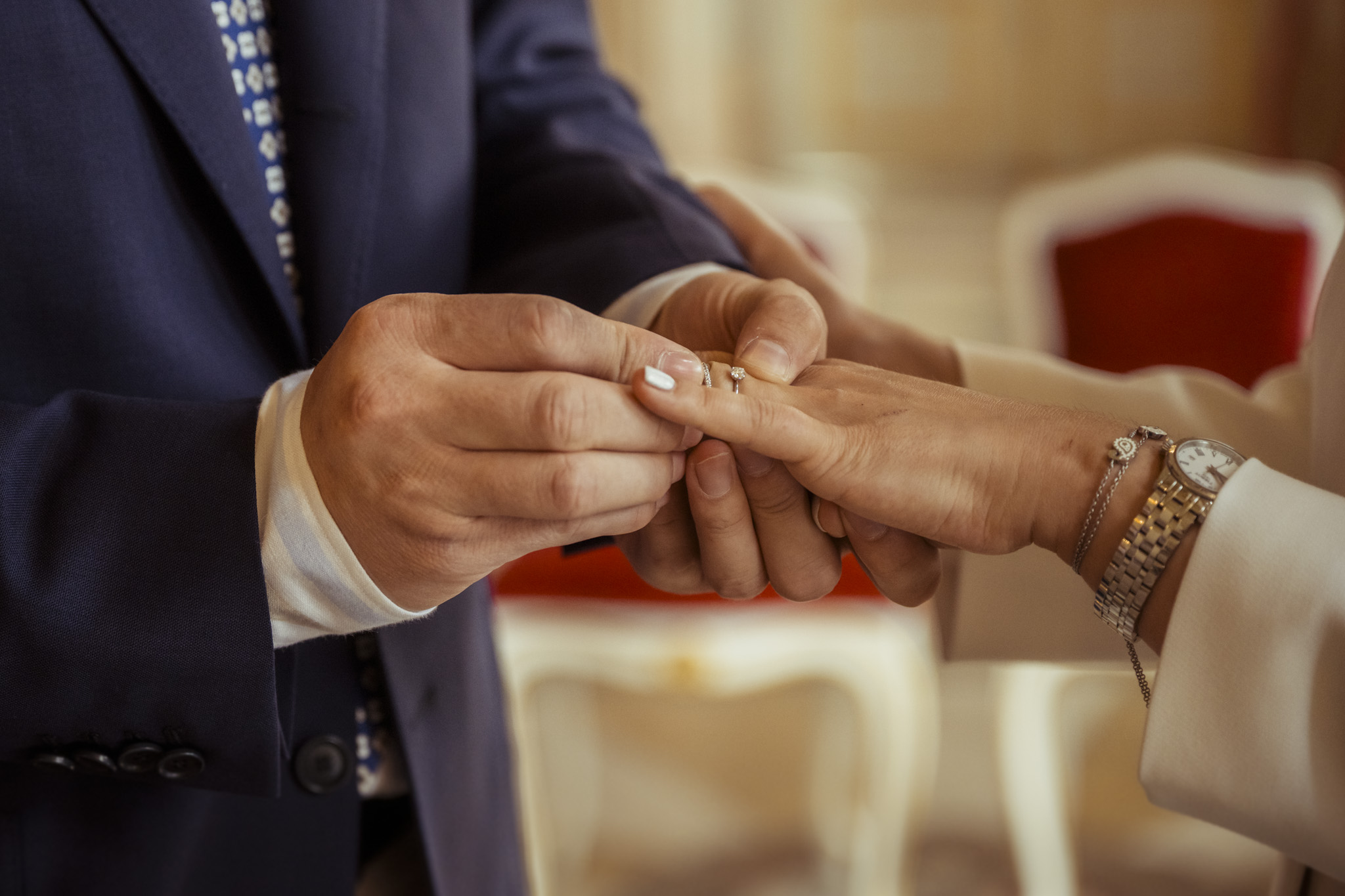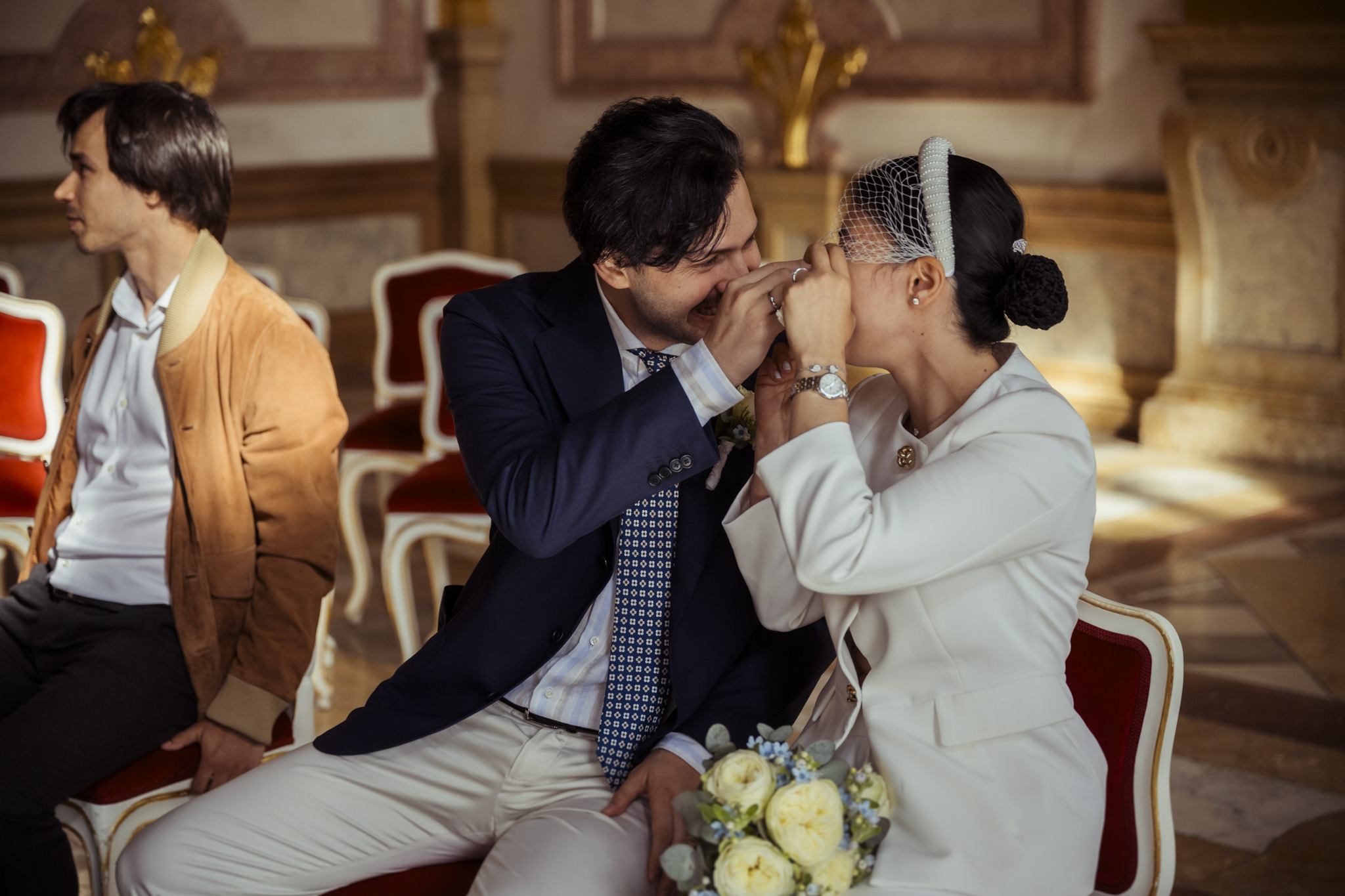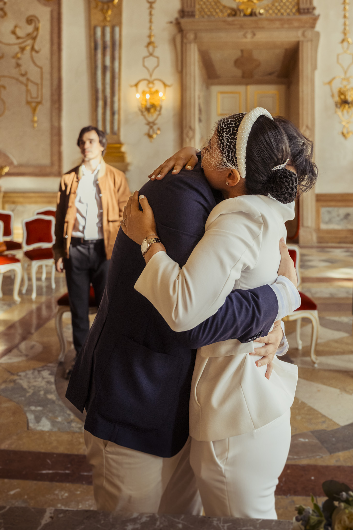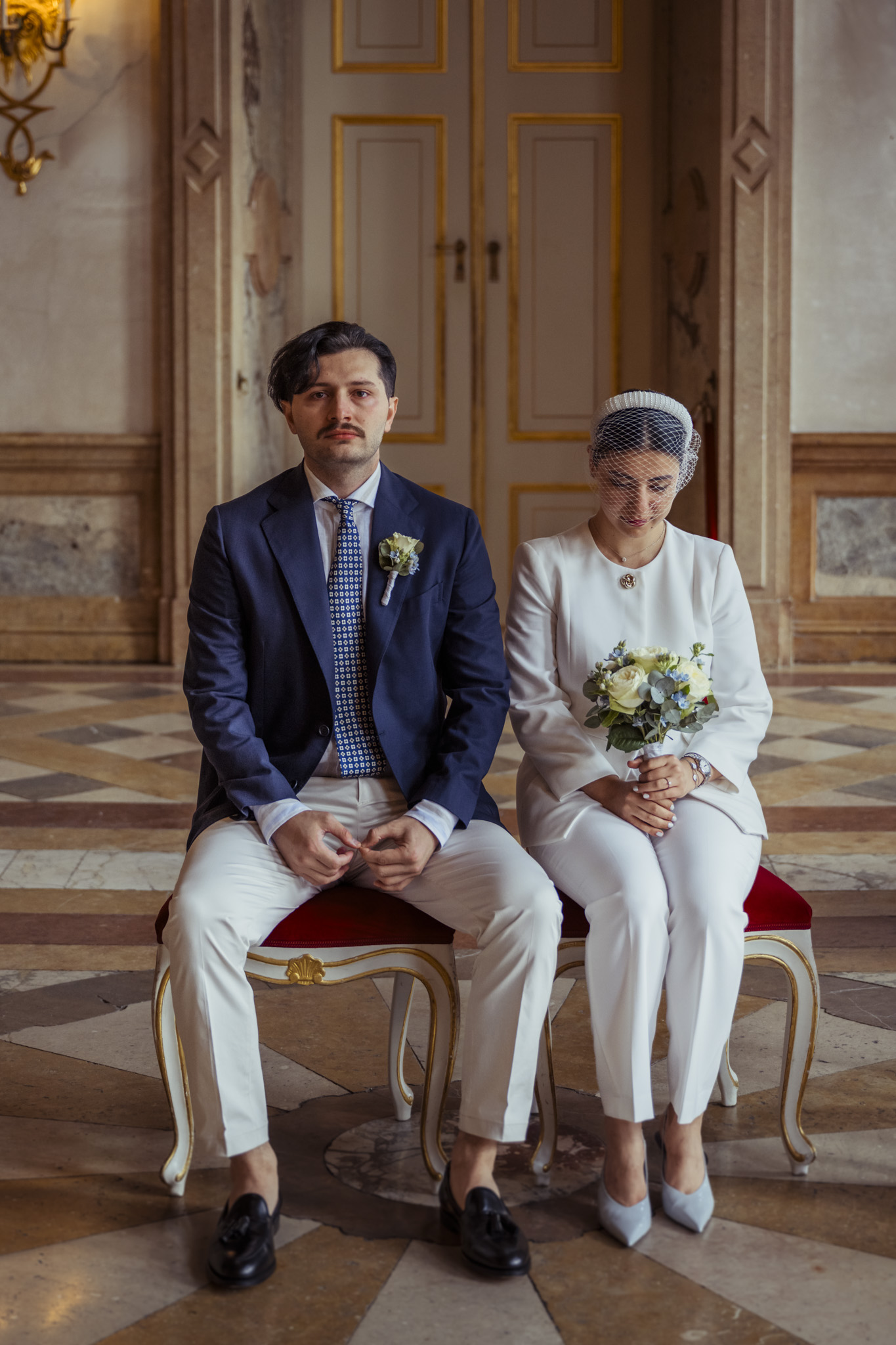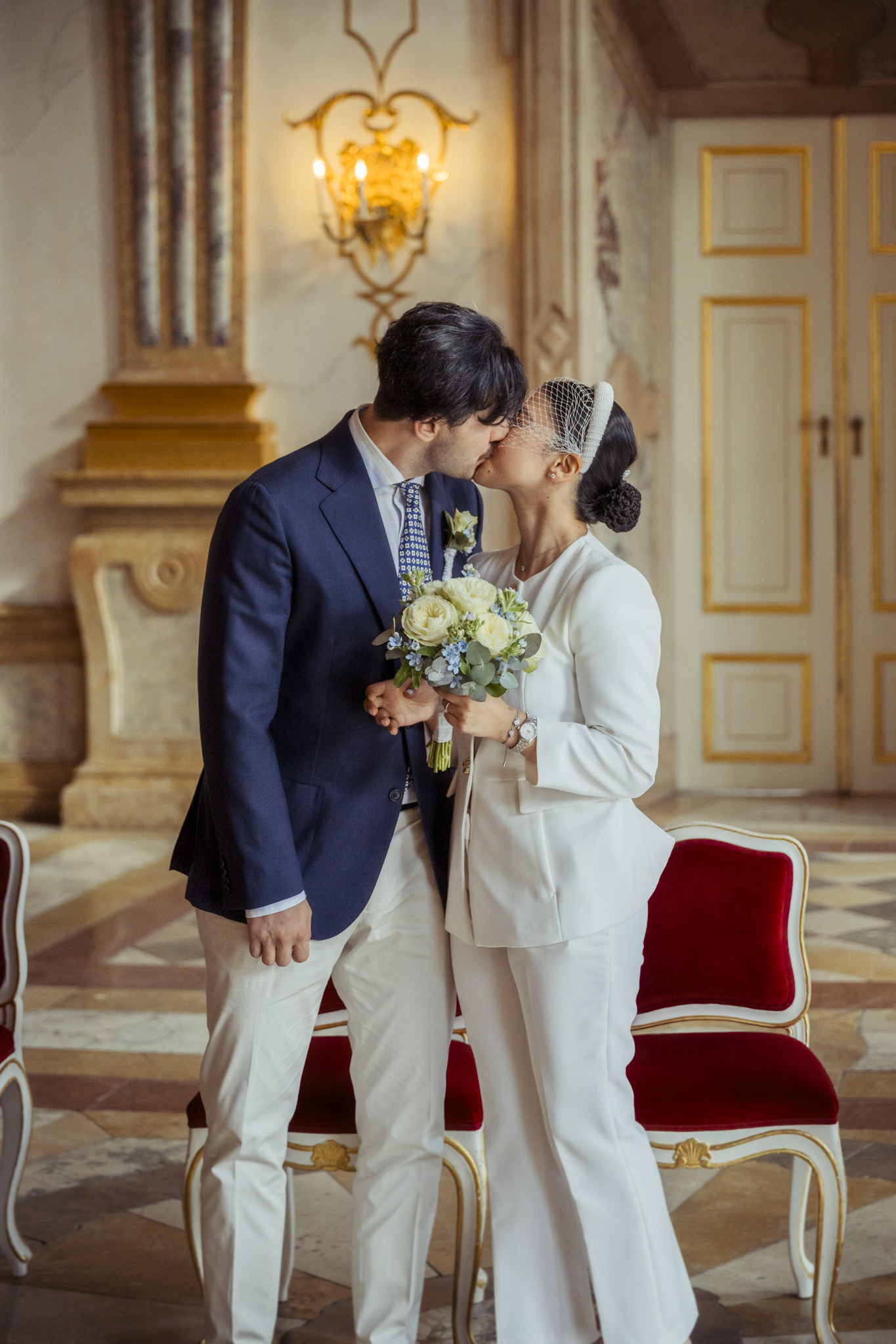 Ihre standesamtliche Trauung im Marmorsaal von Schloss Mirabell war ein Mix aus Eleganz, Emotion und internationalem Flair. Der historische Saal mit seiner barocken Architektur bot die perfekte Bühne für das „Ja“-Wort – festlich, stilvoll und doch mit ganz viel Leichtigkeit.